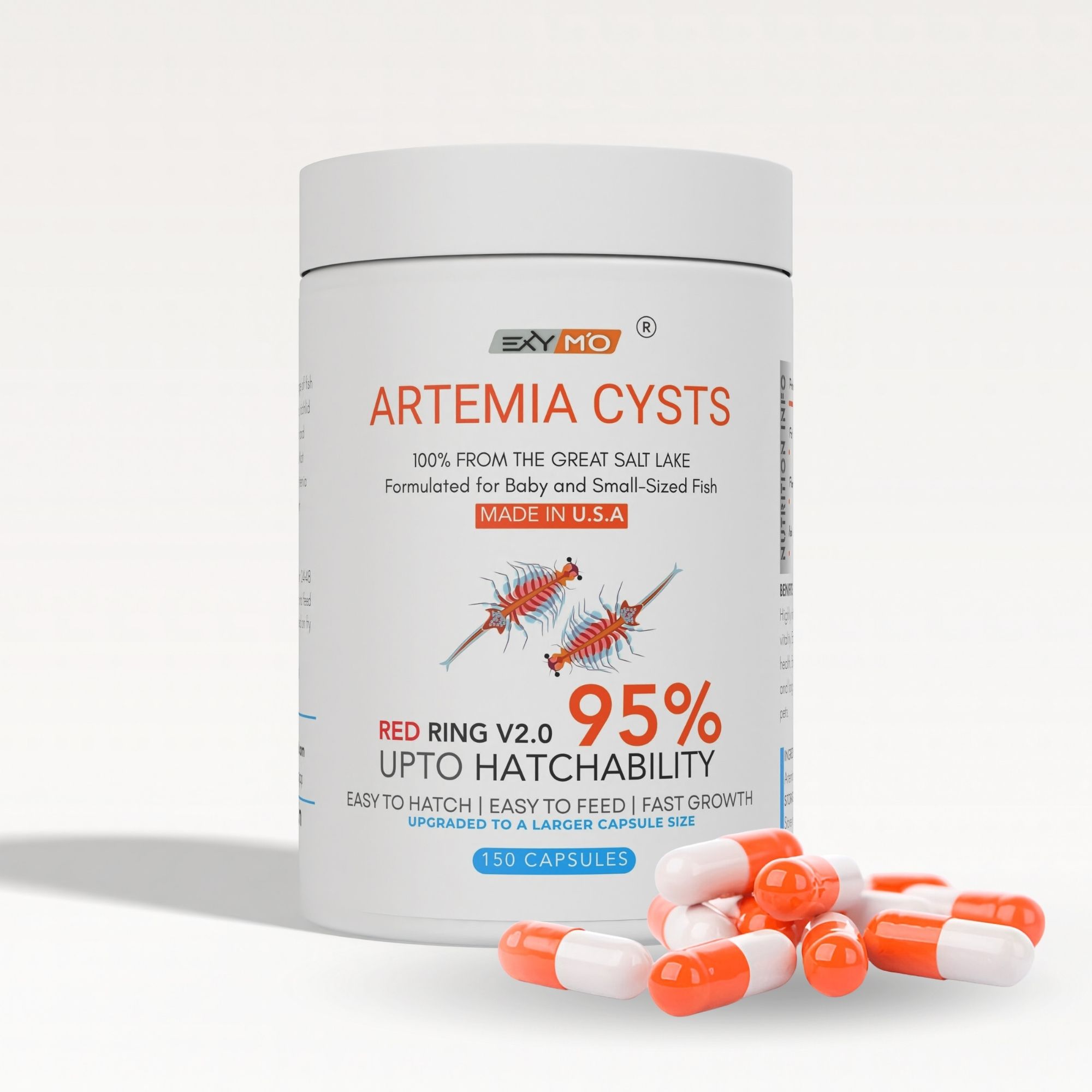 Choose EXYMO Artemia Capsules V2 – larger capsule size, 95% hatch rate, and premium nutrition for thriving fry and tropical fishes.