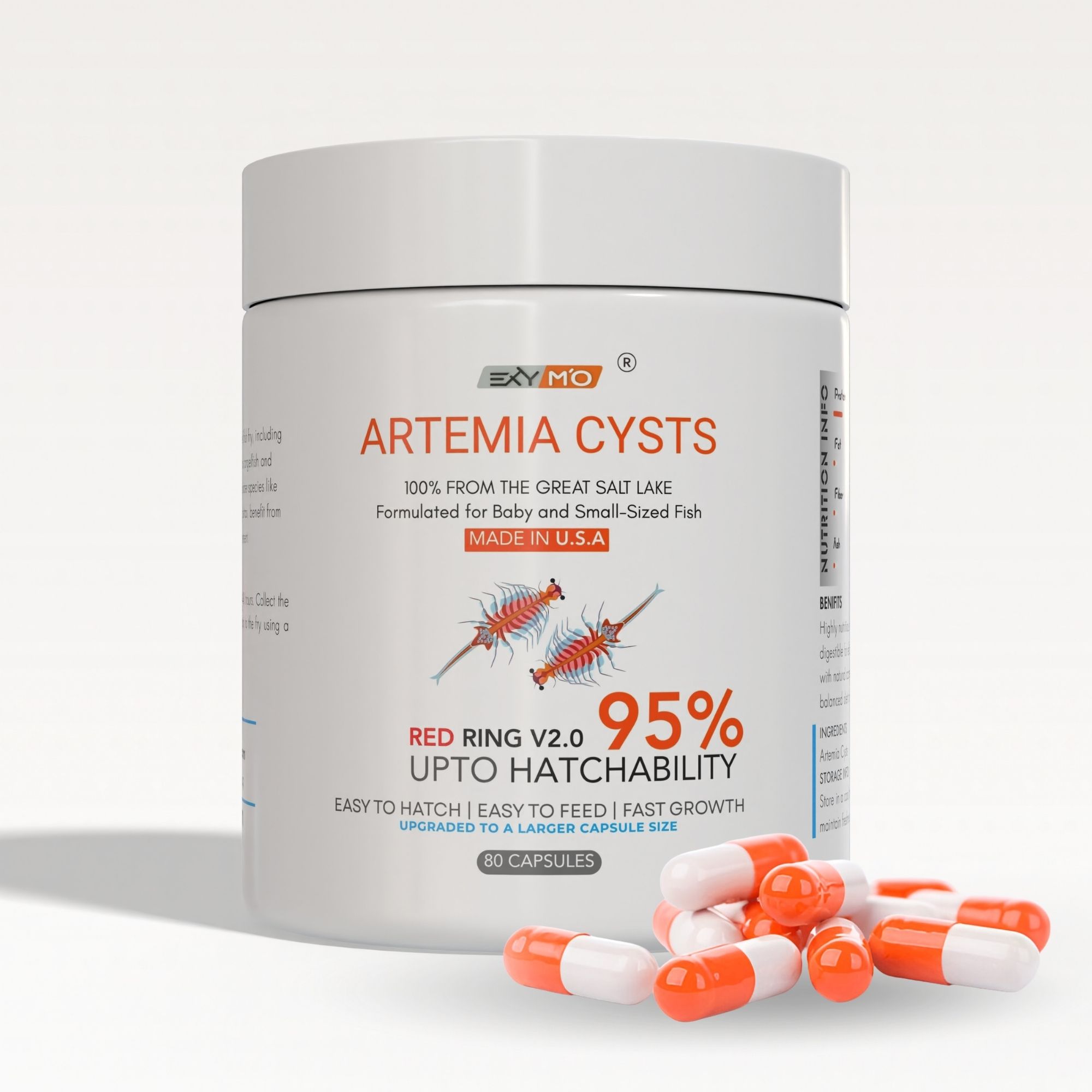 Choose EXYMO Artemia Capsules V2 – larger capsule size, 95% hatch rate, and premium nutrition for thriving fry and tropical fishes.