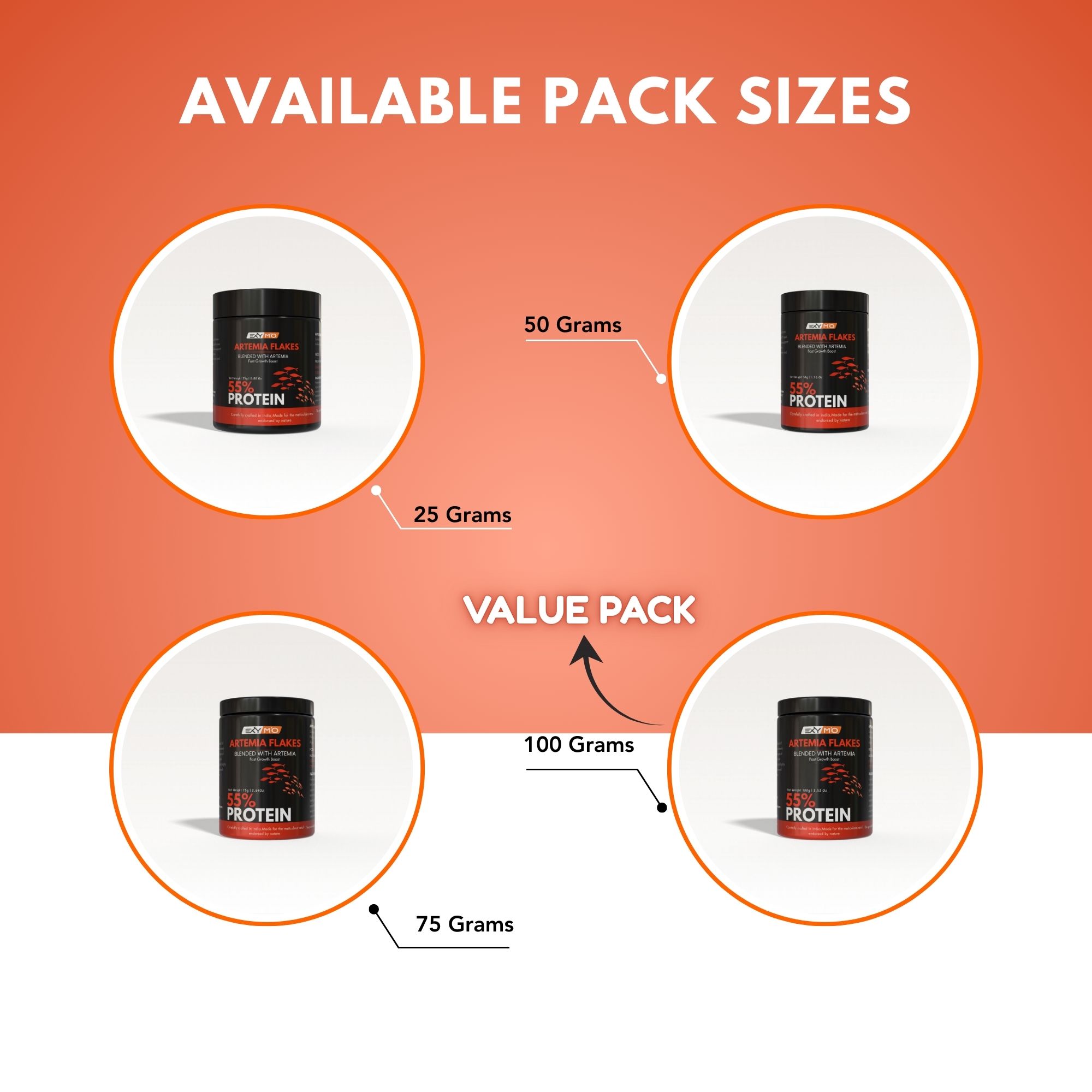 Produced under strict quality standards, EXYMO Artemia Flakes are packed in moisture-resistant, reusable containers to maintain shelf life and nutritional integrity. Available in 25g, 50g, 75g, and 100g packs, these flakes are an essential part of your aquarium feeding routine.