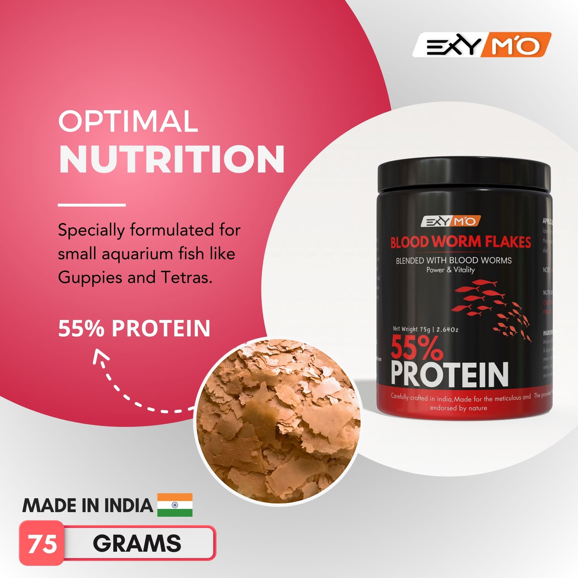 EXYMO Blood Worm Flakes – High-Protein Nutrition for Tropical Aquarium Fish
