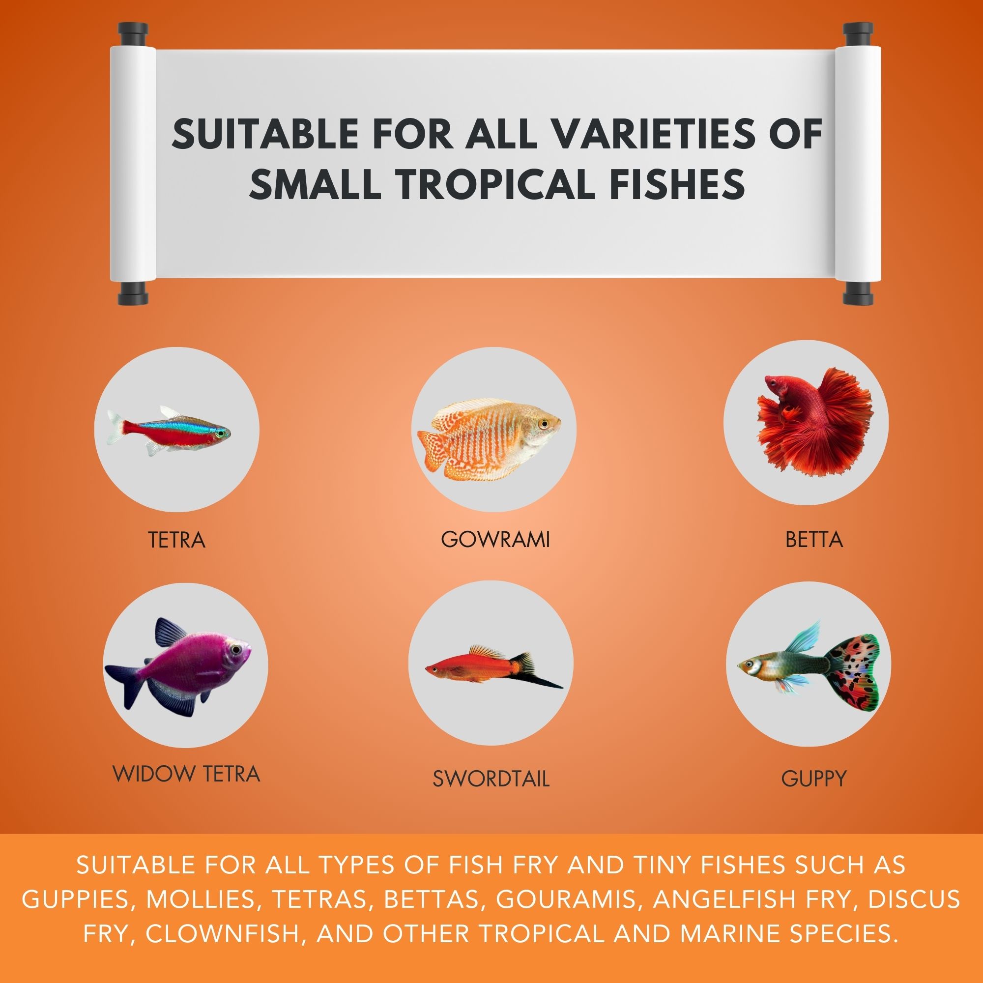 Guppies, Guppy Fish, Betta, Betta Fish, Mollies, Tetras, Gouramis, and other tropical aquarium fishes.