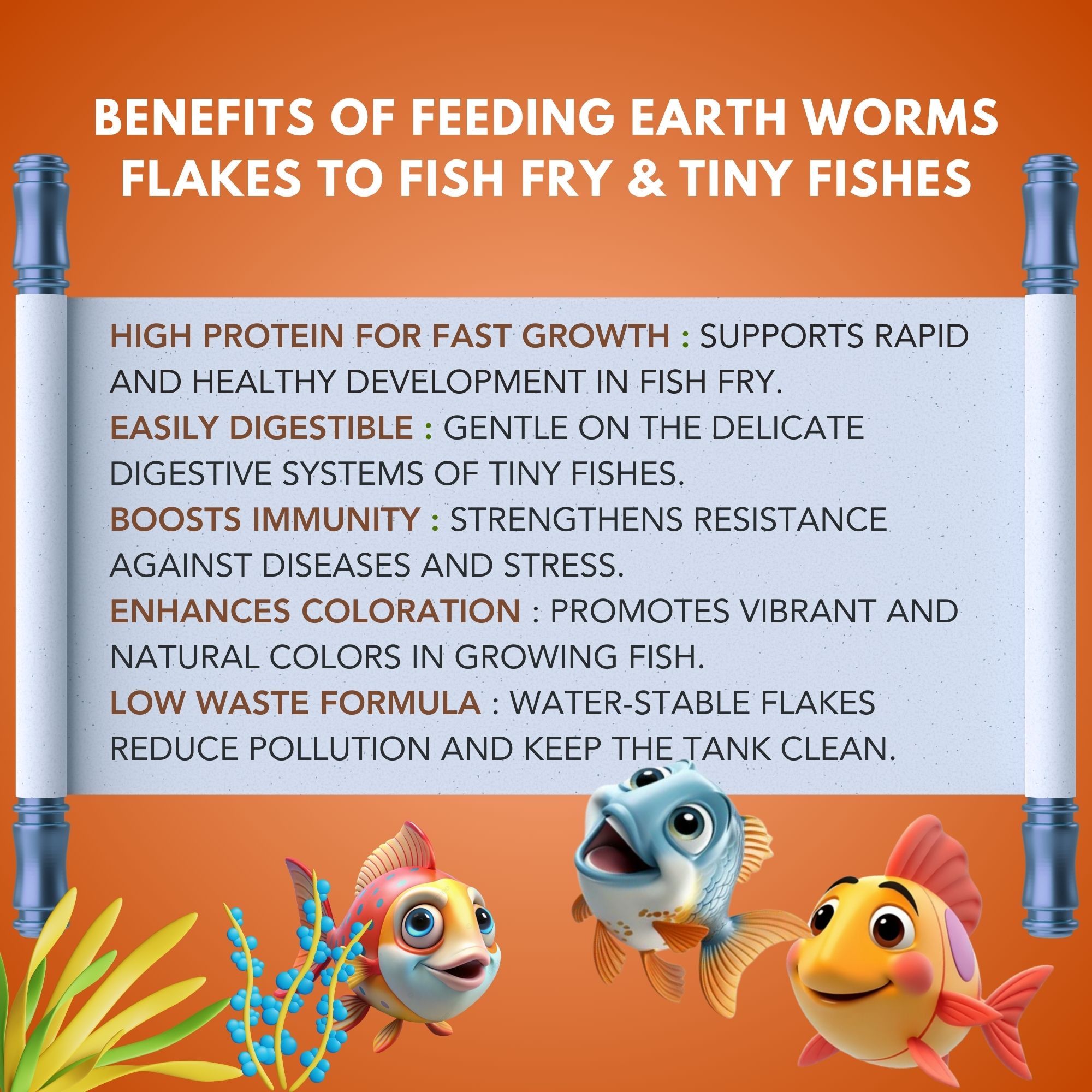 Give your tropical fish the power of Earth Worms with EXYMO Earth Worm Flakes, a premium, nutrient-rich aquarium feed designed to boost growth, enhance natural coloration, and support overall vitality. Crafted from carefully processed Earth Worms, these flakes are rich in protein and essential nutrients, making them ideal for daily feeding of freshwater species like Guppies, Betta, Mollies, Tetras, Gouramis, and other tropical aquarium fish.