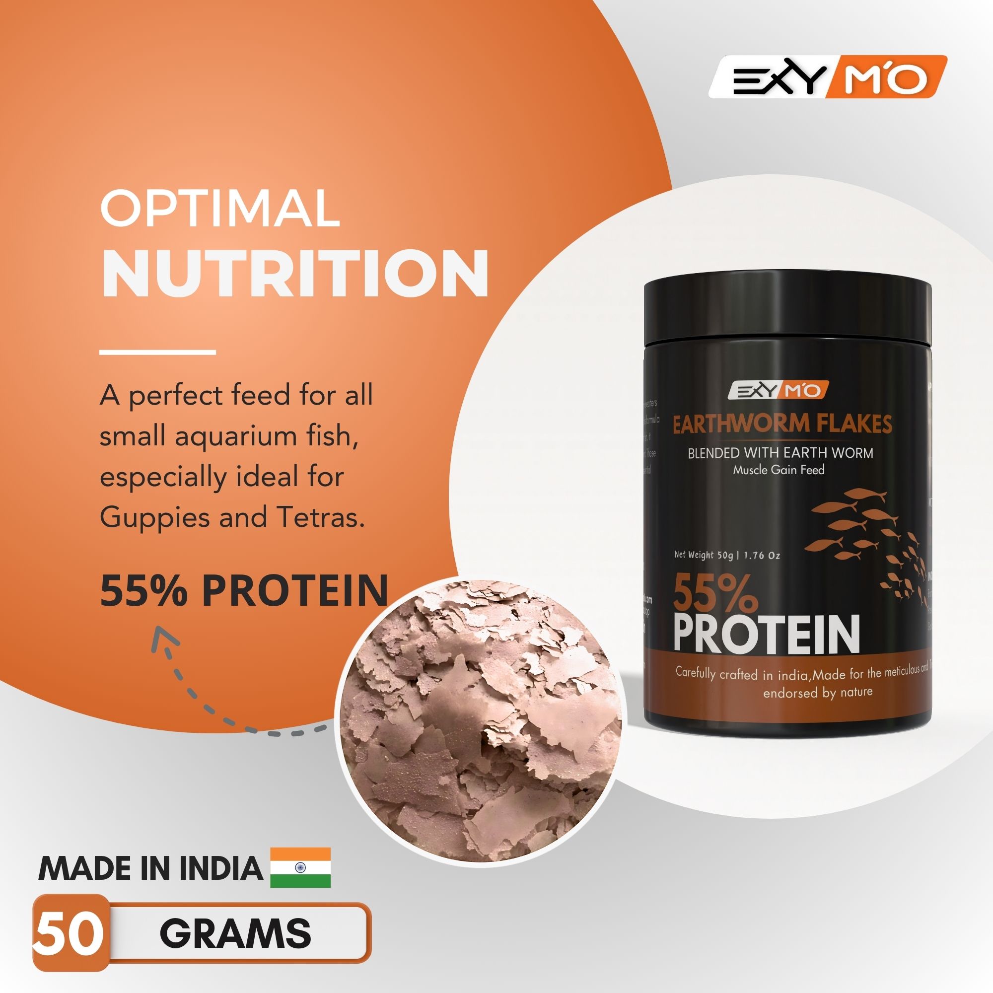 Give your tropical fish the power of Earth Worms with EXYMO Earth Worm Flakes, a premium, nutrient-rich aquarium feed designed to boost growth, enhance natural coloration, and support overall vitality. Crafted from carefully processed Earth Worms, these flakes are rich in protein and essential nutrients, making them ideal for daily feeding of freshwater species like Guppies, Betta, Mollies, Tetras, Gouramis, and other tropical aquarium fish.