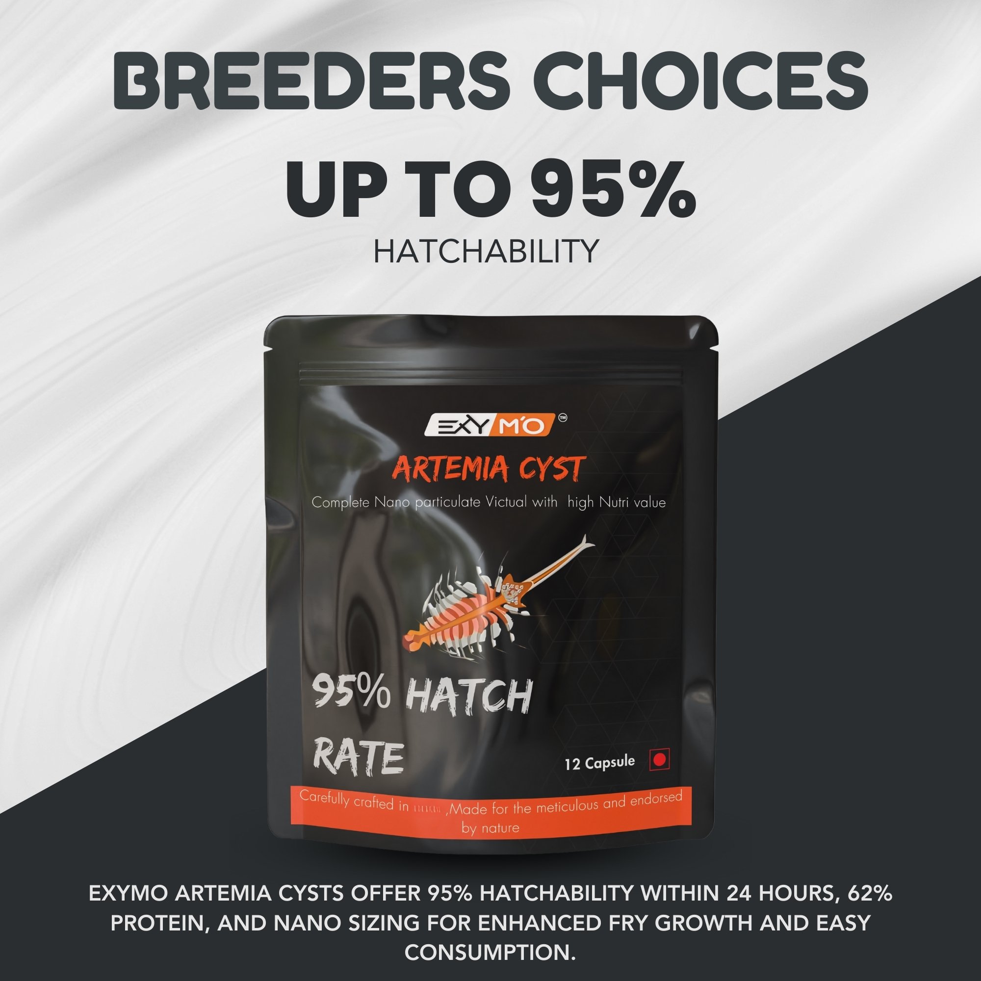 Give your fish fry the best start in life with EXYMO Artemia Capsules, a high-performance solution for hatching premium artemia eggs. Each capsule contains 95% hatch rate artemia cysts, ensuring maximum yield of healthy, nutrient-rich baby brine shrimp every time. With a simple water and air setup, these capsules hatch in just 24 hours, providing a clean, hassle-free, and mess-free feeding solution.