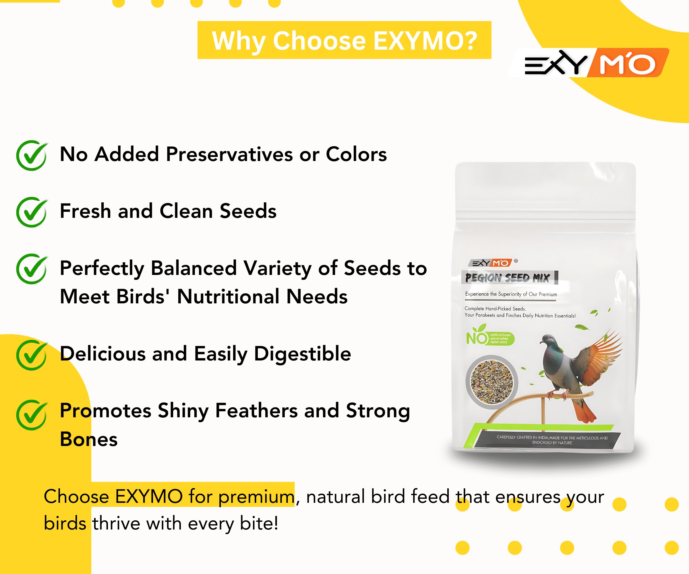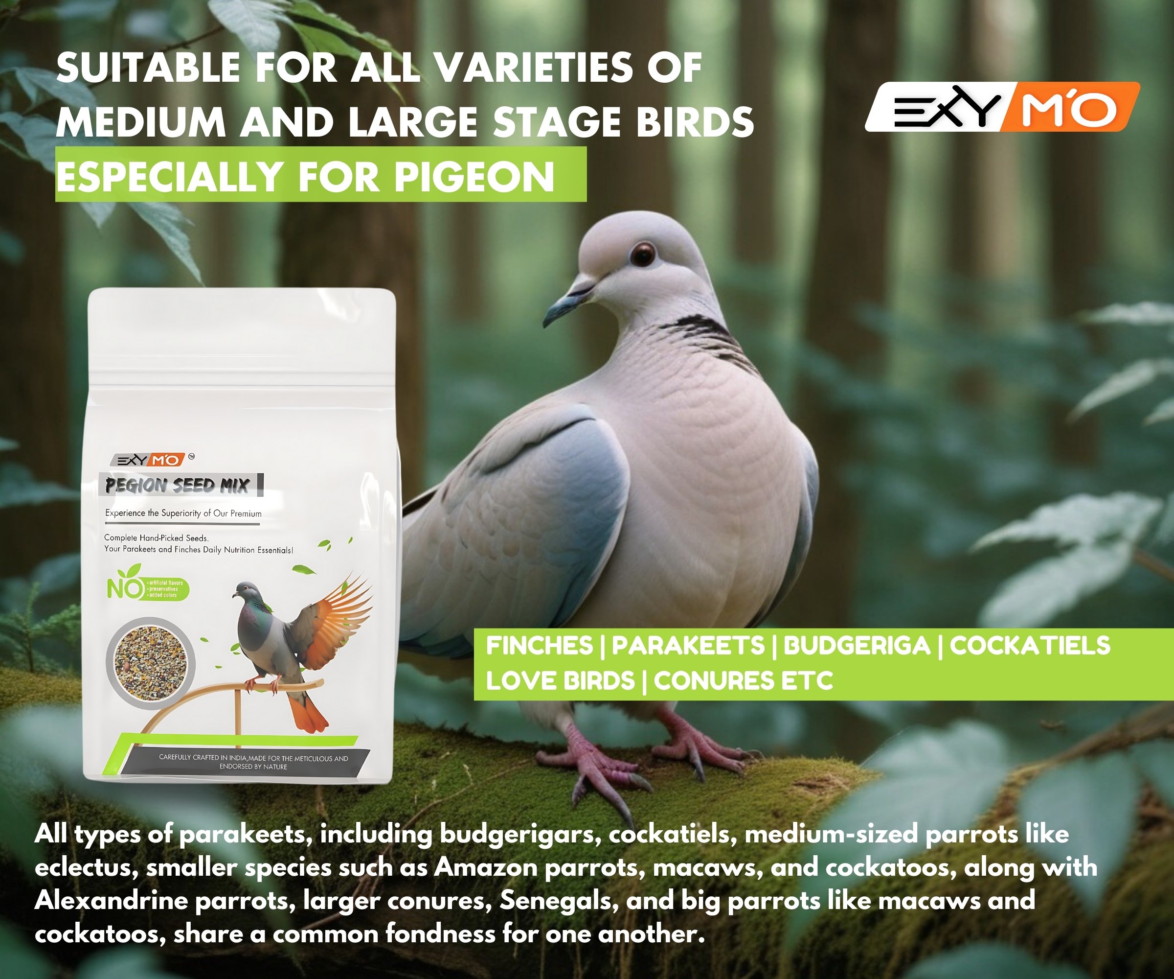 Exymo Birs Food for Pigeon | Healthy & Natural Premium Seed Mix |.Bird Food for