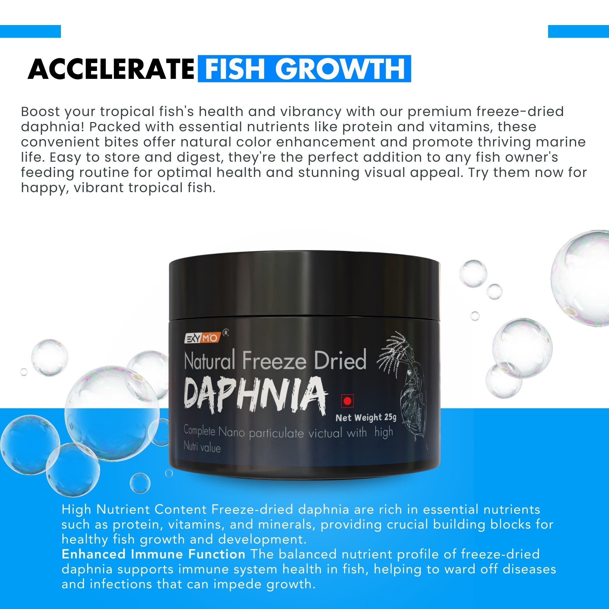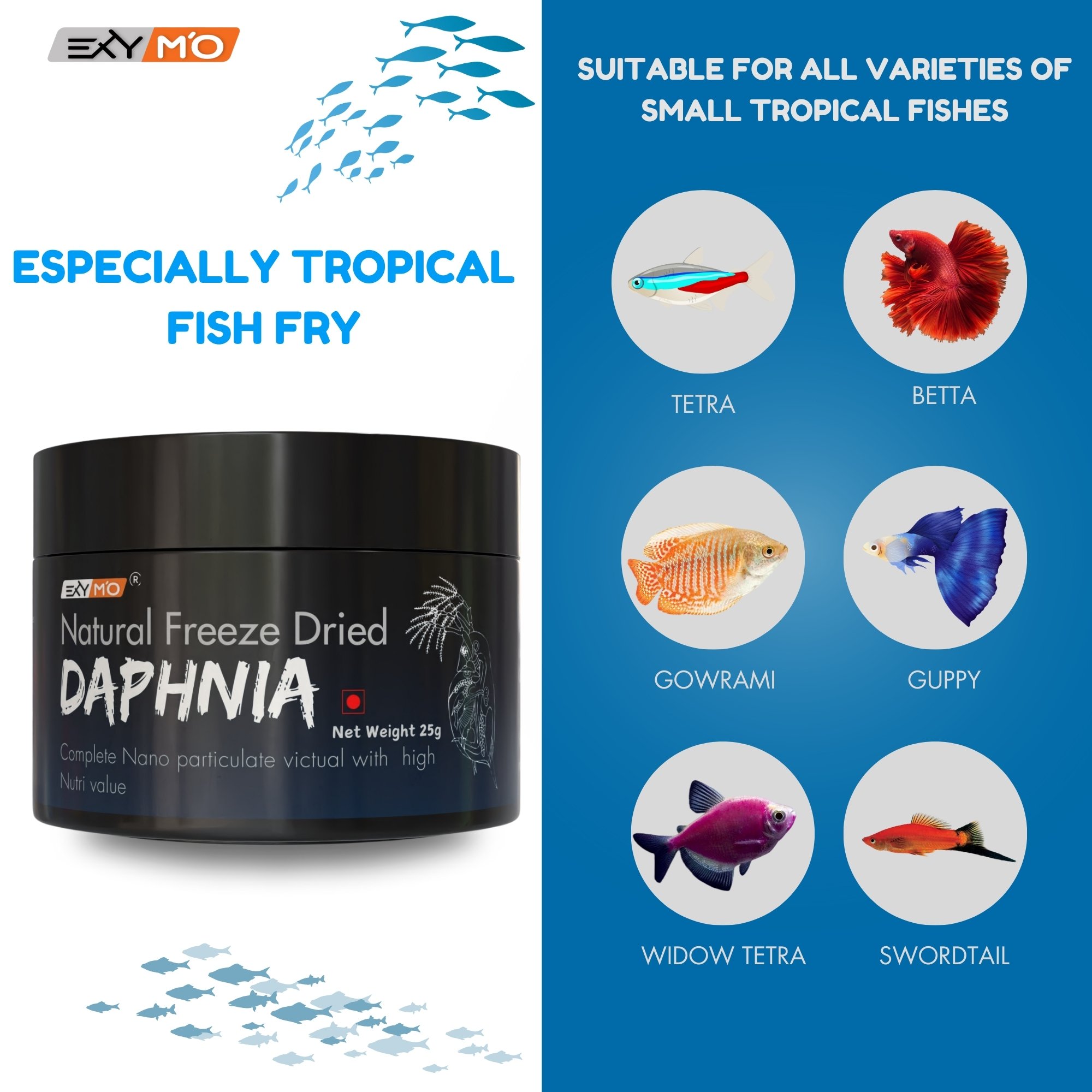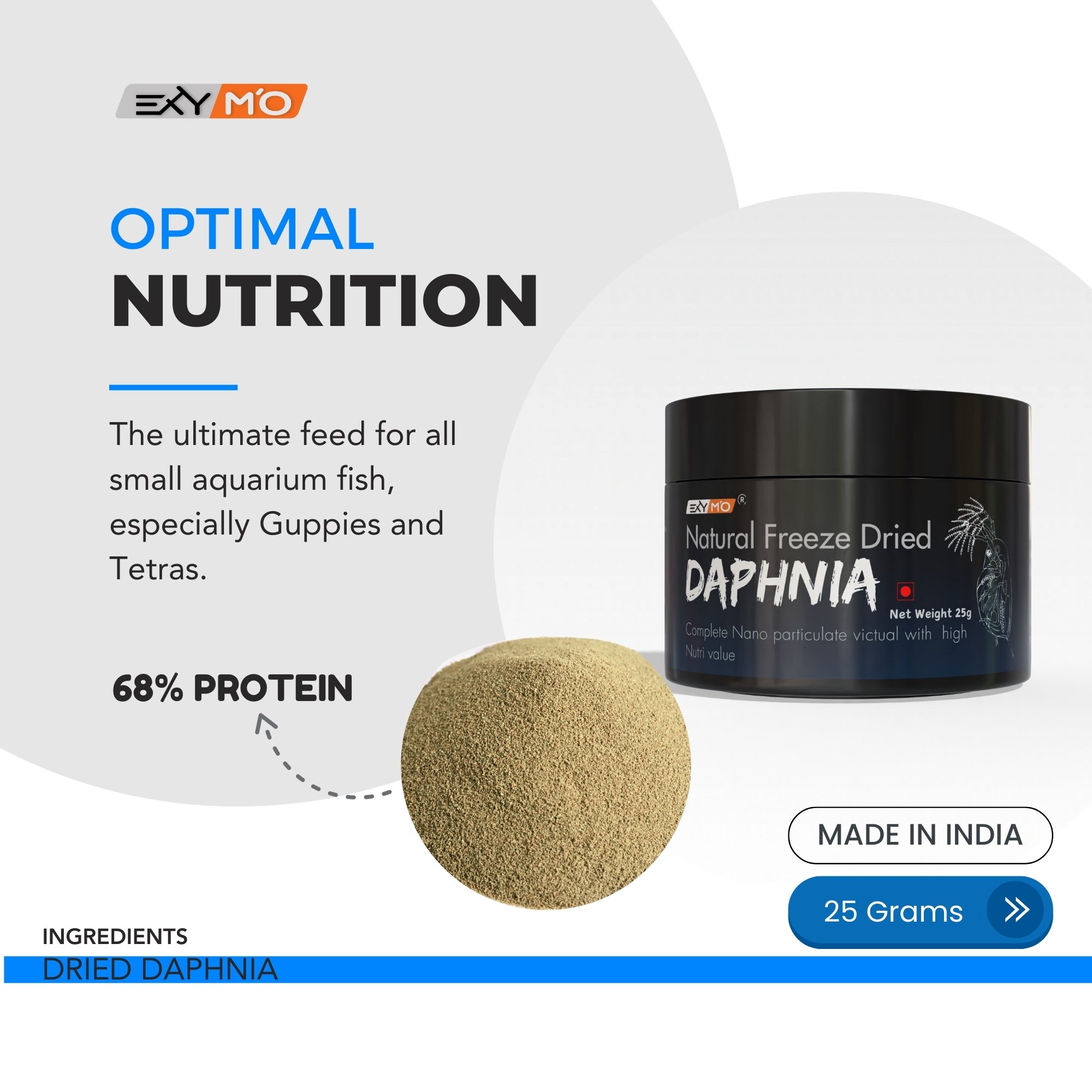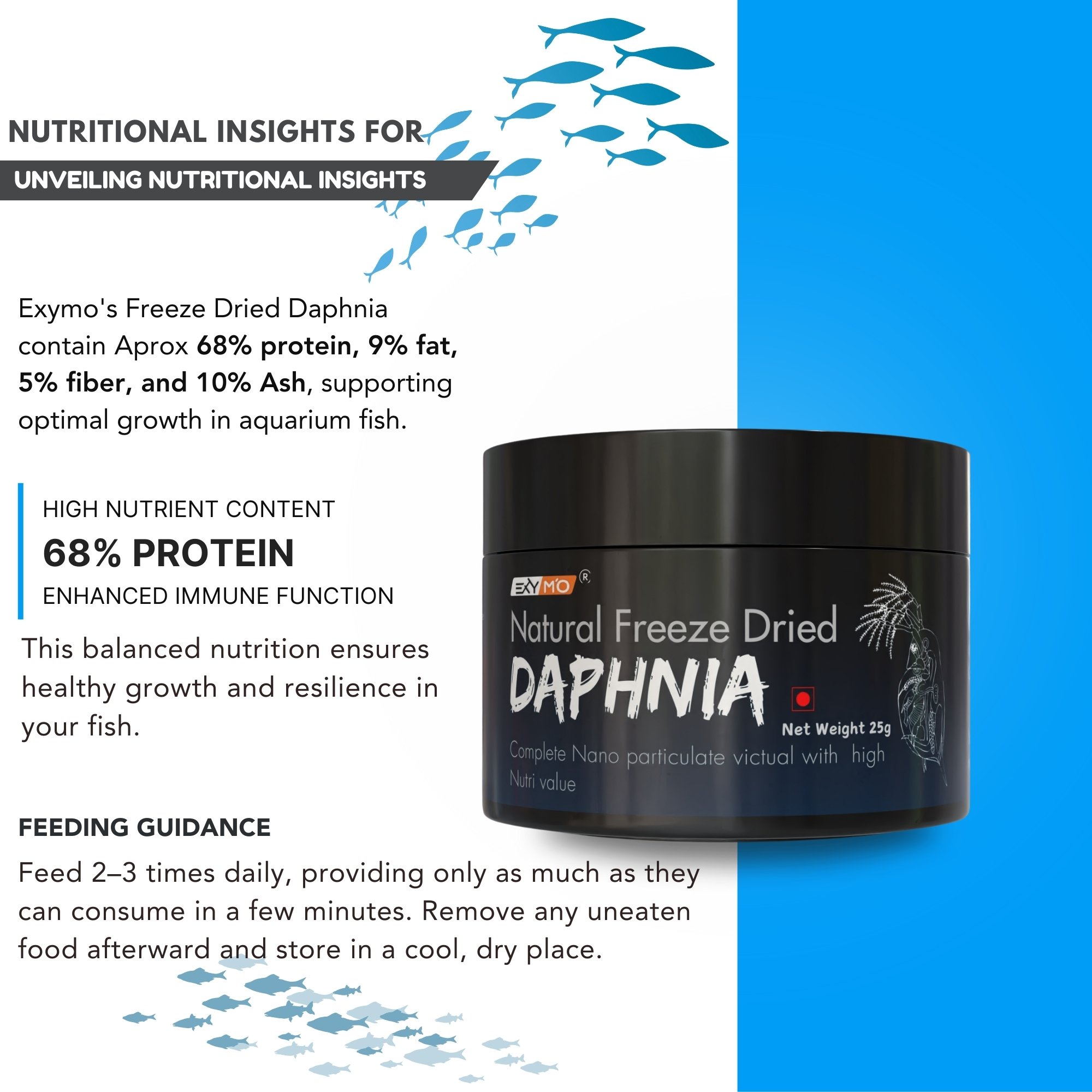 EXYMO Freeze Dried Daphnia – a natural, protein-rich feed that keeps your fishes healthy, vibrant, and active.