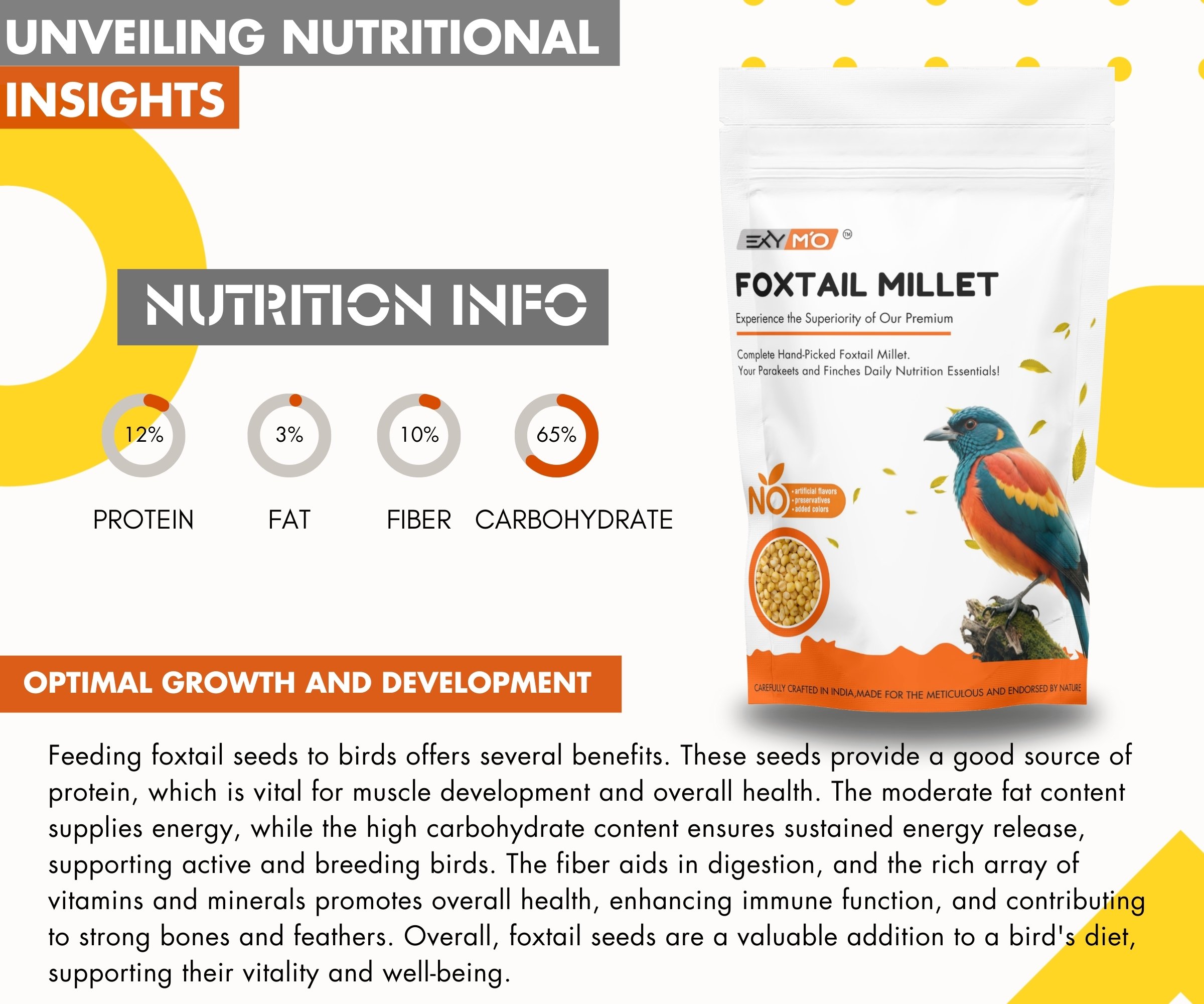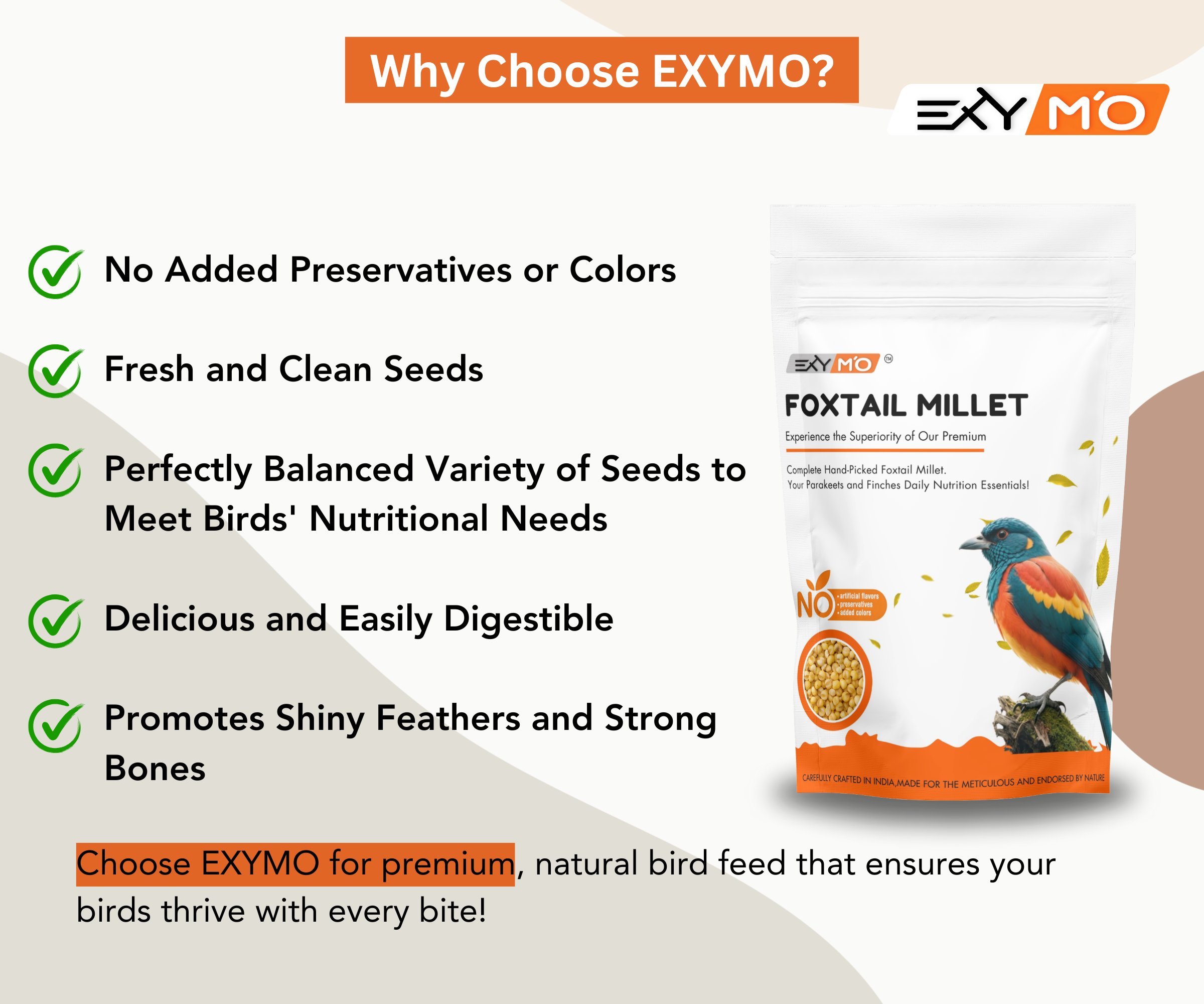 Exymo Foxtail Millet (phoksatel baajara).Bird Food for Canaries, Finches, Waxbil
