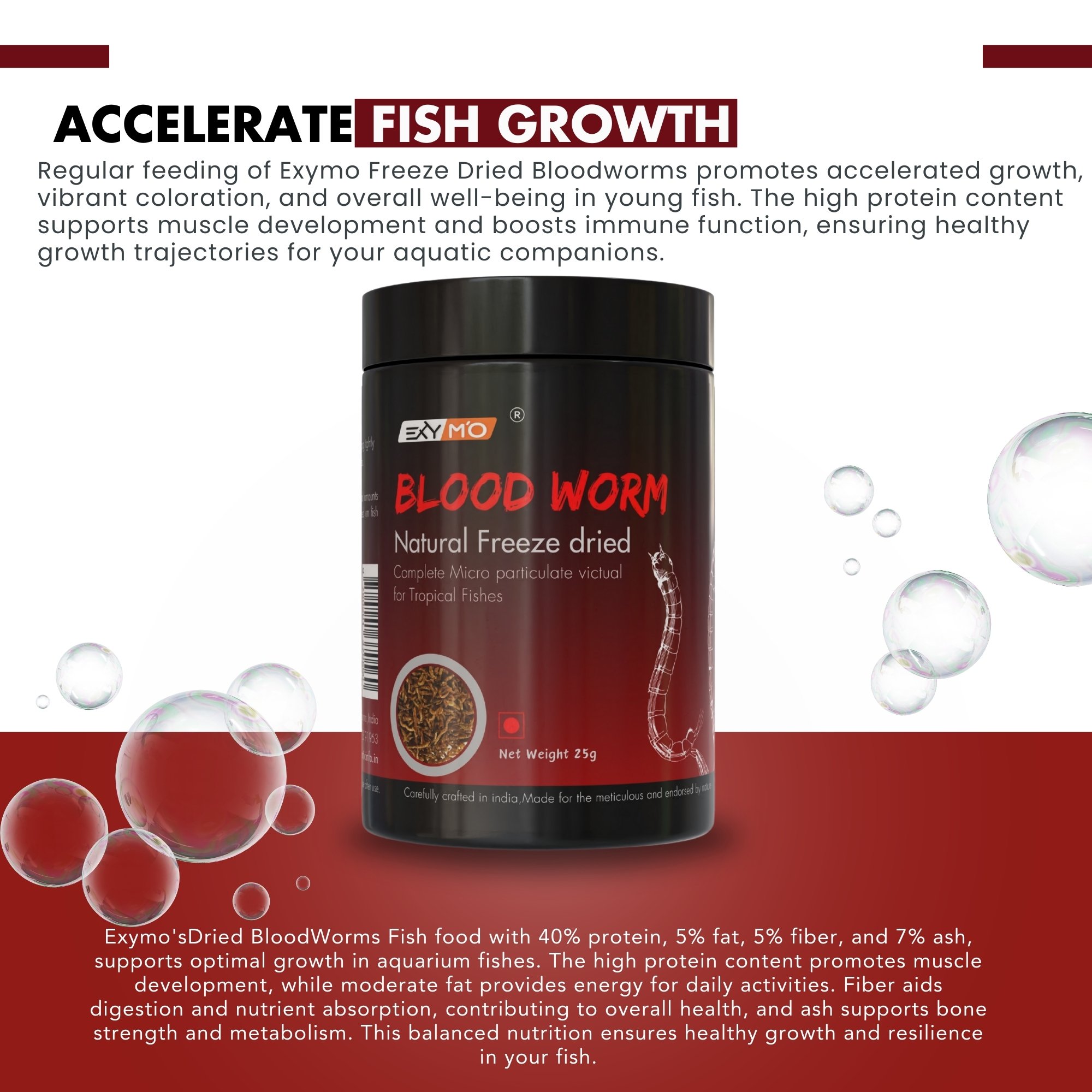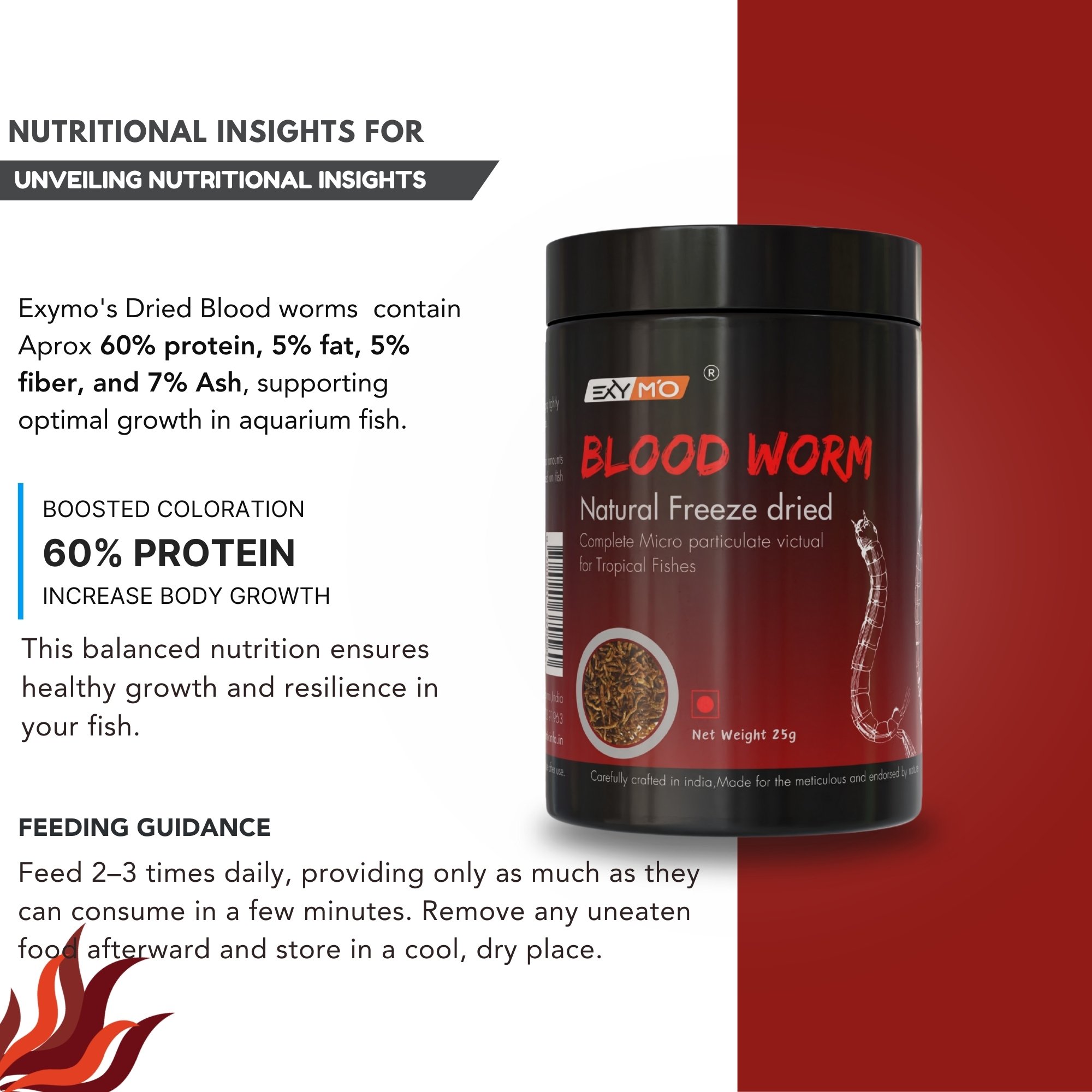 EXYMO Freeze Dried Blood Worms – Premium Protein Feed for Small and Medium Fishes